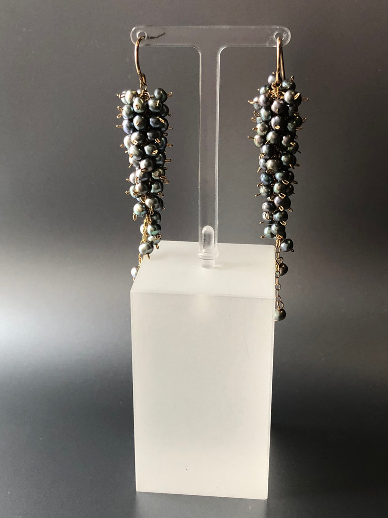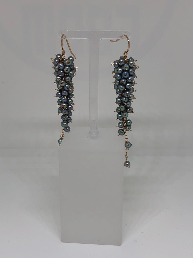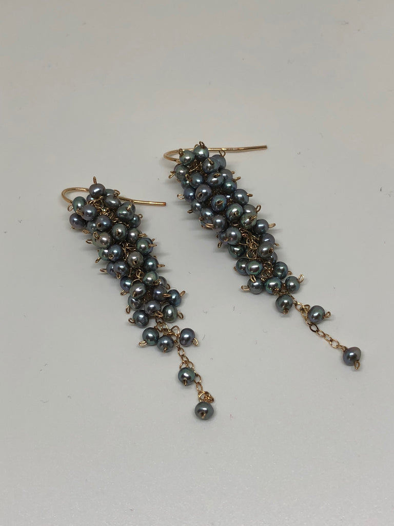 These lovely pair of metallic grey freshwater pearl earrings in gold filled french ear wires look lovely cascading from your ears. Can be worn formal or casual and look like a goddess! Measures approximately 2 1/2 inches from top to bottom. Simple yet elegant!
